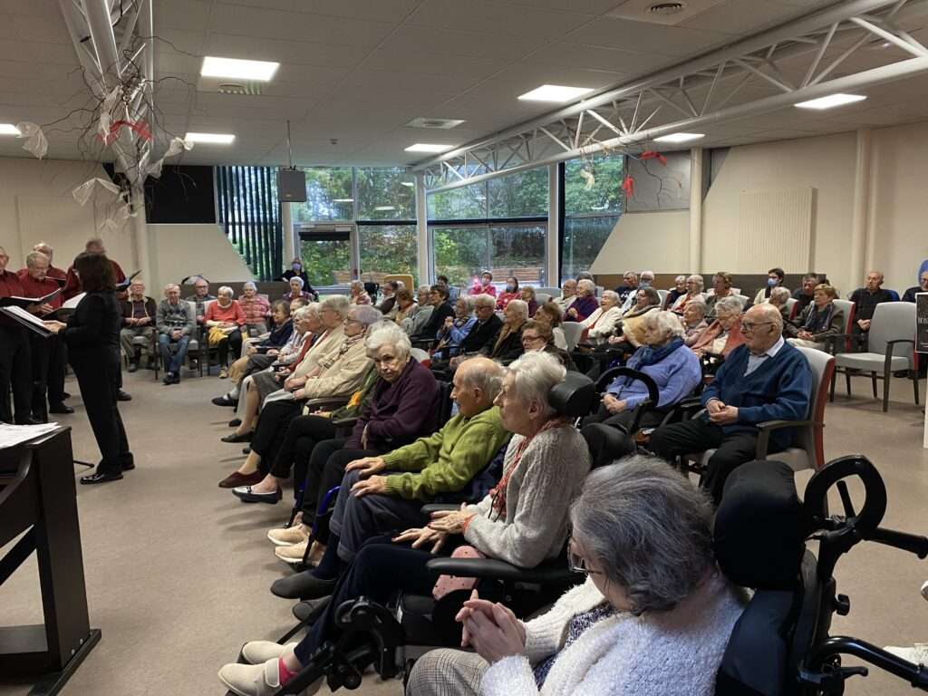L’intervention de ce Chœur d’hommes a été appréciée par tous les résidents, qui en ont pris plein les oreilles. Beaucoup ont reconnu certains chants, les suivant en rythme avec leurs bras et leur tête; certains ont même chanté. Pour se remettre de leurs émotions, les résidents ont pu partager un goûter.