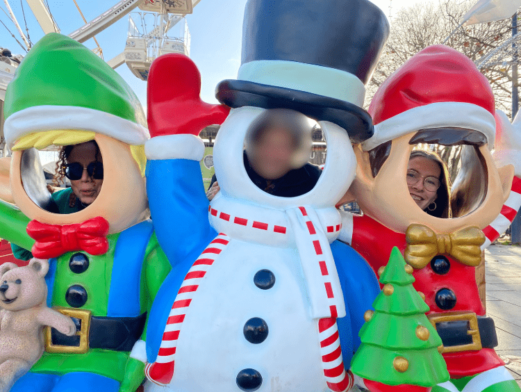 Suite à cette exposition, nos aînées ont enchaîné directement avec le marché de noël. A l’arrivée au village, la féerie était telle que des sourires sont apparus sur les visages de nos résidentes, émerveillées par ce grand sapin de noël décoré d’une main de maître, devant lequel elles ont pu prendre une photo toutes ensemble. Une petite « tragédies » s’est produite lorsque certaines résidentes se sont transformées en bonhommes de neige et en lutins.