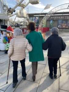 par la suite nos aînées ont pu déambuler dans le marché découvrant de nombreux stands divers et variés: sculptures en bois, bouillottes artisanales, vin chaud… Mais un stand a particulièrement attiré leurs papilles gustatives, celui des croustillons, qui a éveillé leur gourmandise. Une dégustation de croustillons a donc eu lieu sous le beau soleil breton. Une balade riche en émotions pour nos résidentes, qui leur a rappelé de nombreux souvenirs, notamment pour celles qui habitaient la ville ou y ont vécu de beaux moments. Des changements dans la ville ont également été constatés par nos résidentes . C’est avec joie et plaisir que nos résidentes ont effectué cette balade, qui les a plongées dans la féerie de Noël et leur a permis de susciter à nouveau de nombreuses émotions, en les transportant dans une douce et belle nostalgie. Nos aînées ont ainsi partagé un moment hors du temps, lors de cette promenade pleines de rires, de sourires et de magie, au cœur de cette chaleureuse période de Noël.
