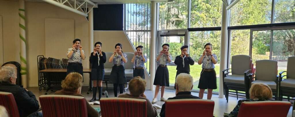 Après la digestion, les résidents ont pu assister aux chants Scouts. Pour connaitre la raison de leur venue, remontons quelques temps en arrière!