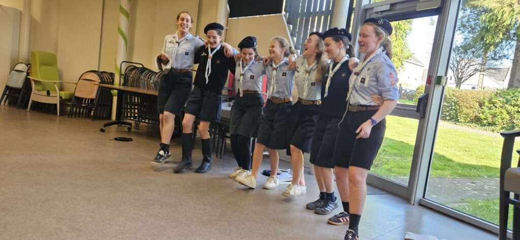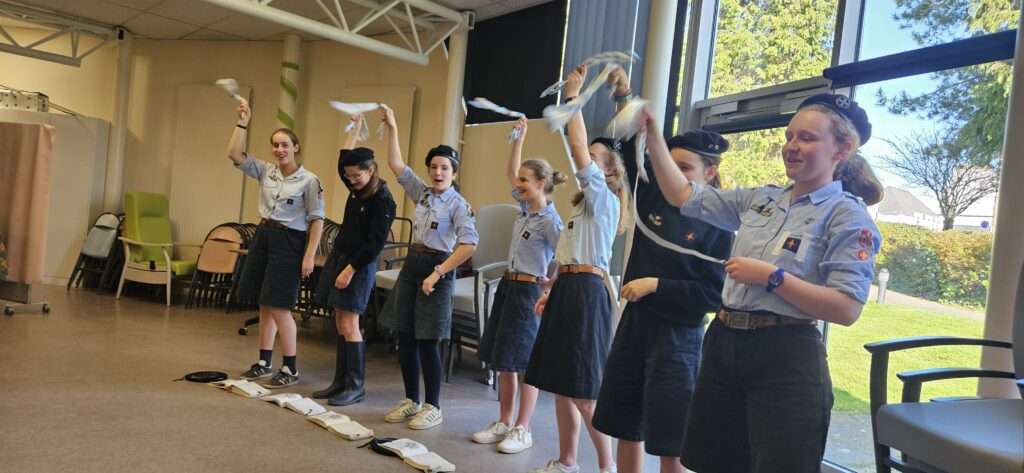 Ce mercredi, c’est la patrouille des sternes des guides d’Europe qui nous ont rendu visite, ils ont interprété des chansons sur la Bretagne et des Chants traditionnels scouts avec énergie et enthousiasme.